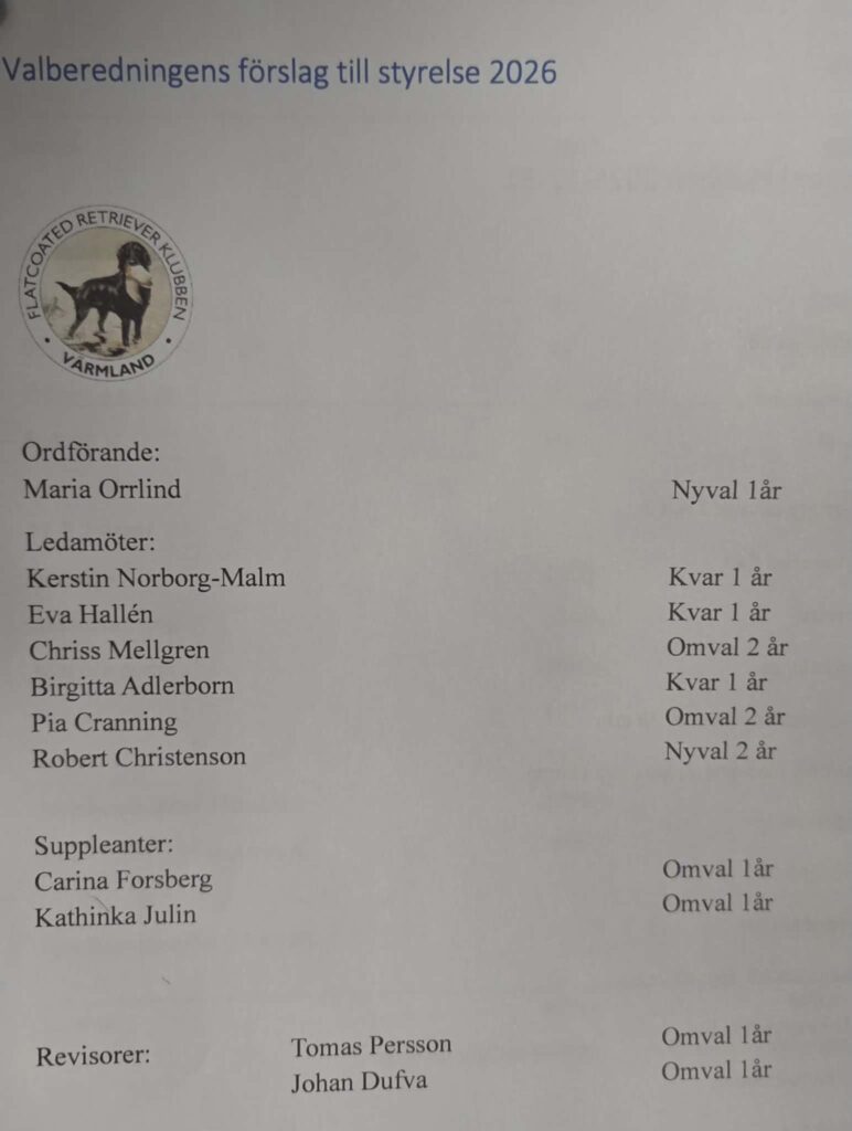 Efter intressant föredrag av Karin Björk hur vi agerar i Akuta Olyckstillstånd på våra hundar i skogen och vad som bör vara med i vår sjukvårdslåda på varje träning, förklarade sittande ordförande Årsmötet 2026 för öppnat. Sedvanliga ärenden presenterades och godkändes av närvarande medlemmar, valberedningens förslag på styrelse godkändes, utmärkelser och avtackning genomfördes och förståss…de delikata smörgåstårtorna avnjöts under trevligt mingel innan det konstituerande mötet fastslog ledamöters och suppleanters ansvarsområden.